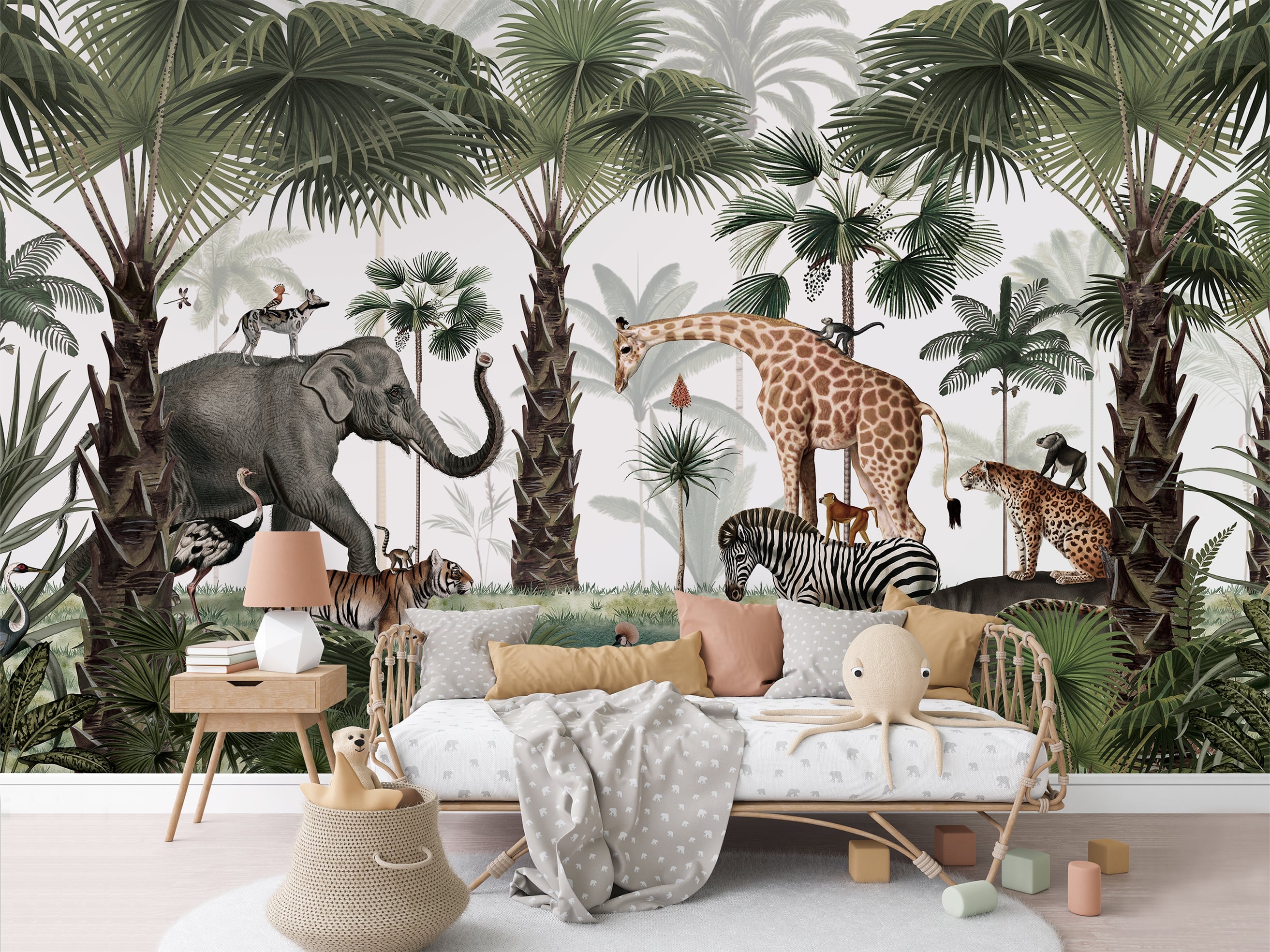 Dieses Wandbild erinnert an die Geschichte "Die Konferenz der Tiere". Auf dieser Lichtung im Dschungel treffen die Wildtiere aufeinander. Zebra,... Lesen Sie mehr