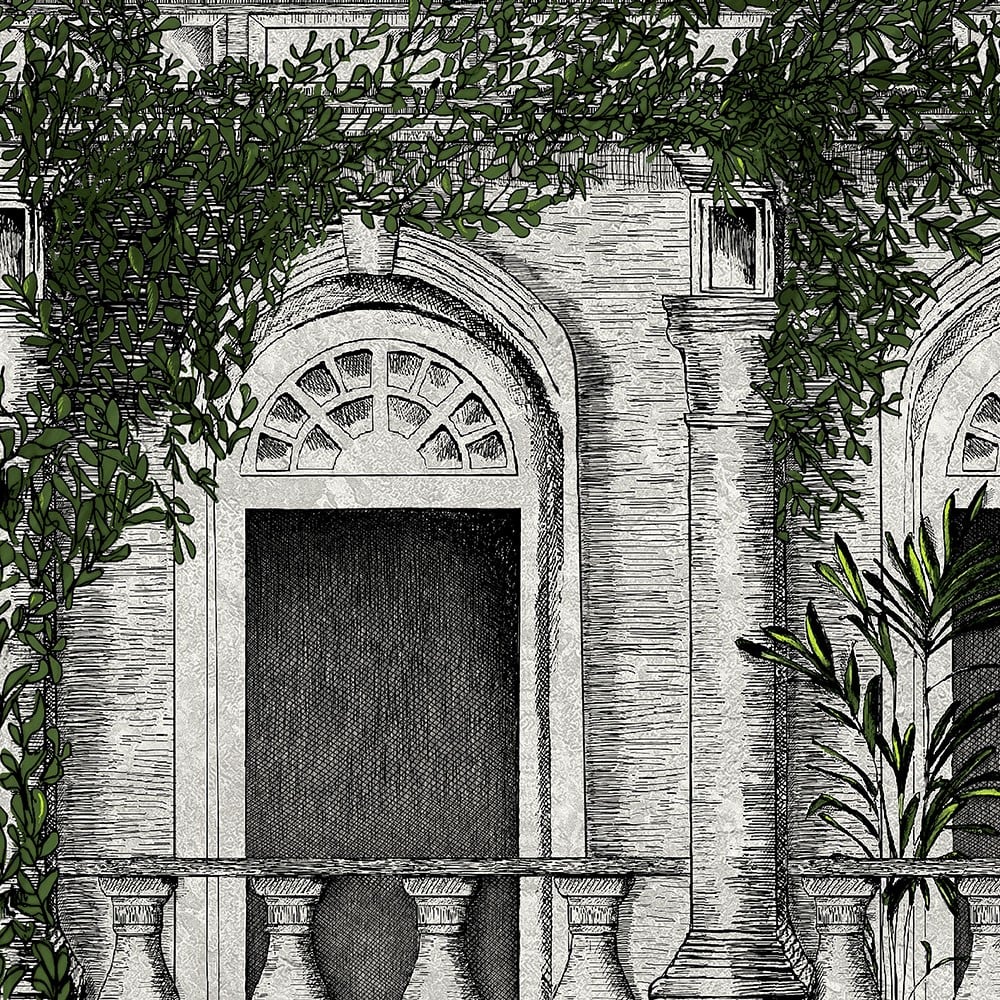 Eine erstaunliche handgezeichnete Zeichnung, die schöne Details rund um die Türen und Fenster dieses architektonischen Gebäudes zeigt, wobei das wachsende... Lesen Sie mehr