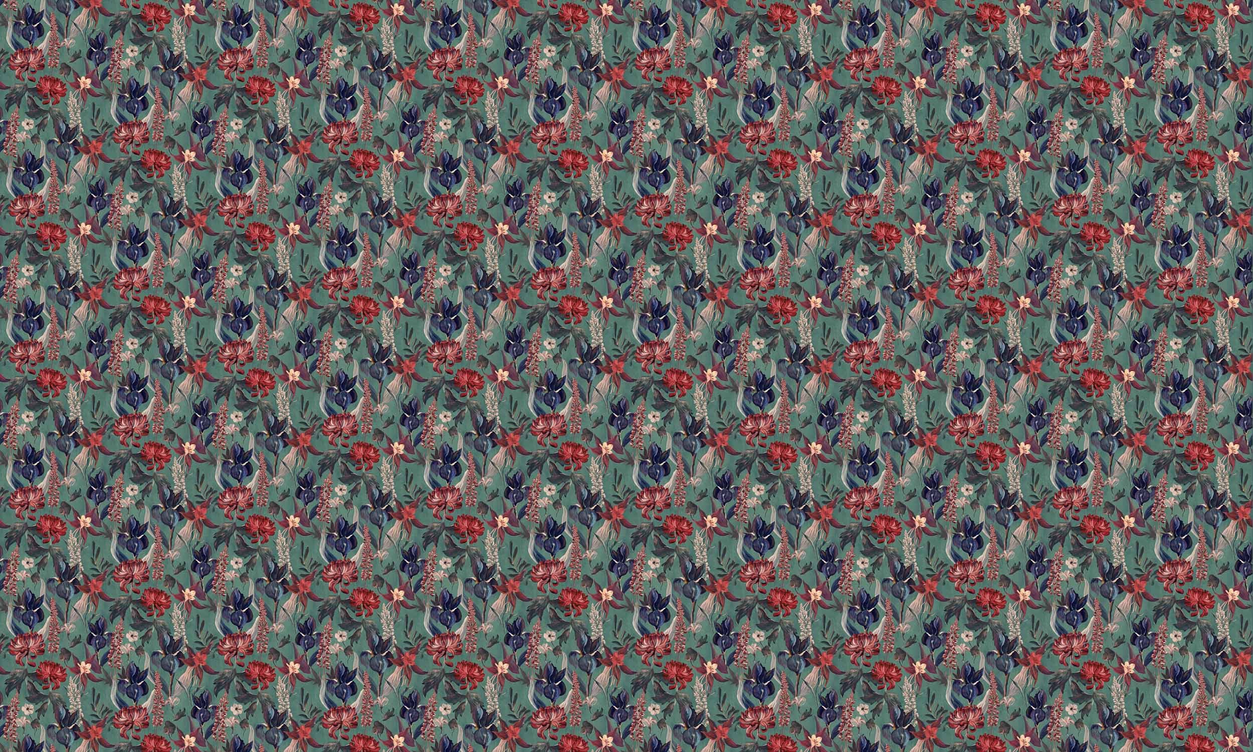 Die Tapete Jardin Rojo Menta von Coordonné ist ein florales Design in Grüntönen. Spektakuläre karminrote Blüten, bei denen grandiose Chrysanthemen... Lesen Sie mehr