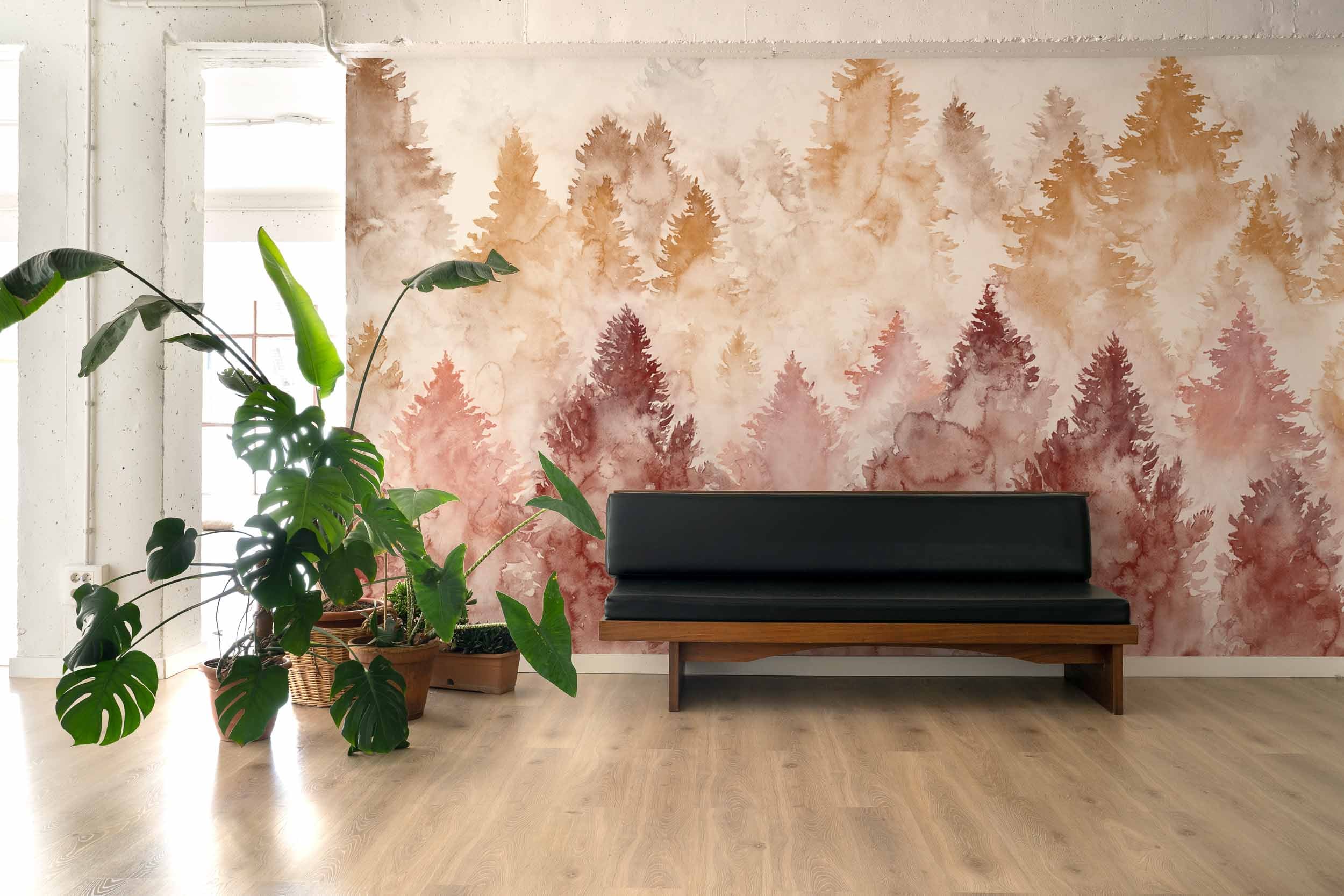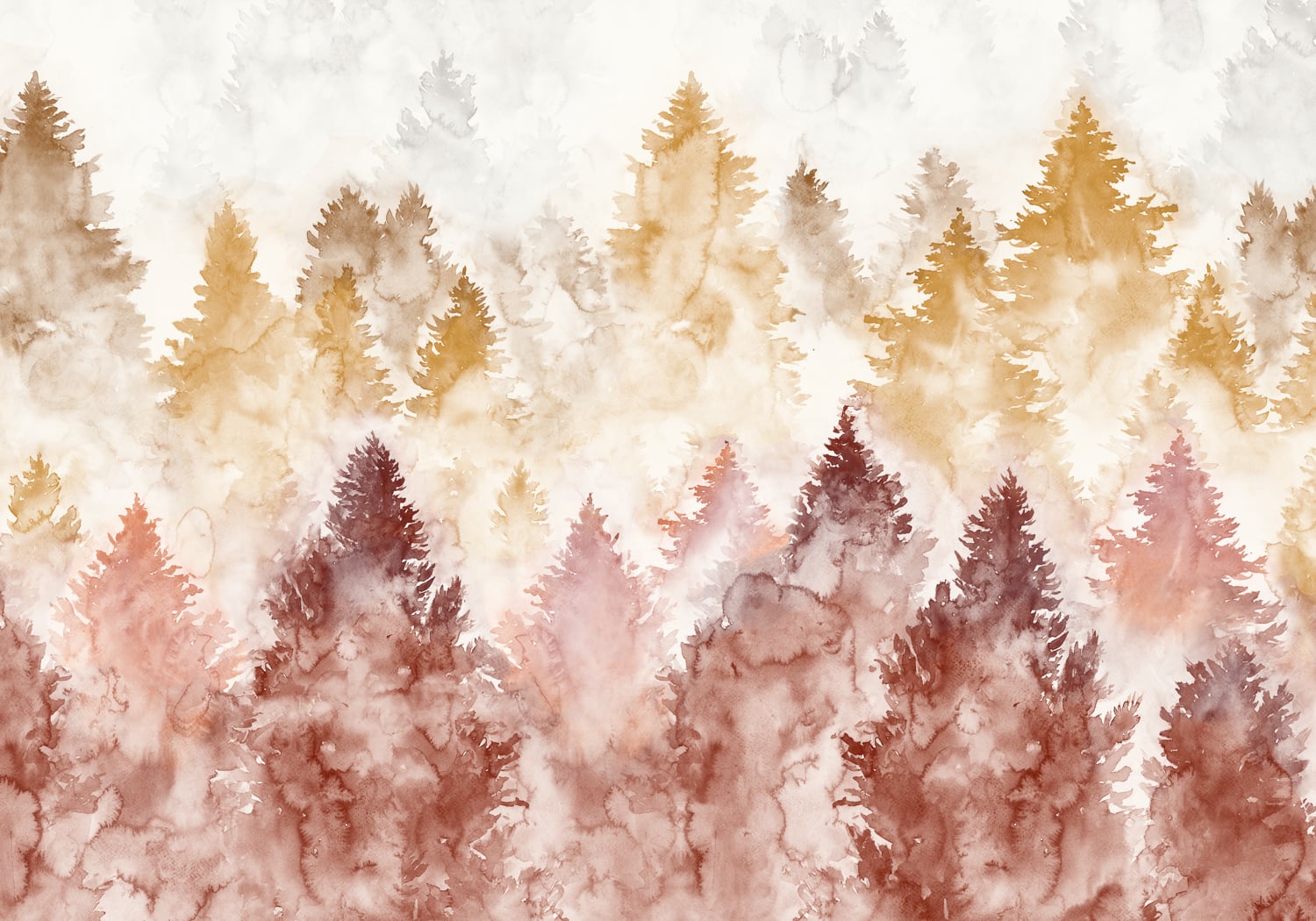 Die Tapete Mendia von Coordonné ist ein Landschaftsdesign. Ein rätselhafter Kiefernwald, eingehüllt in dichten Winternebel Lesen Sie mehr