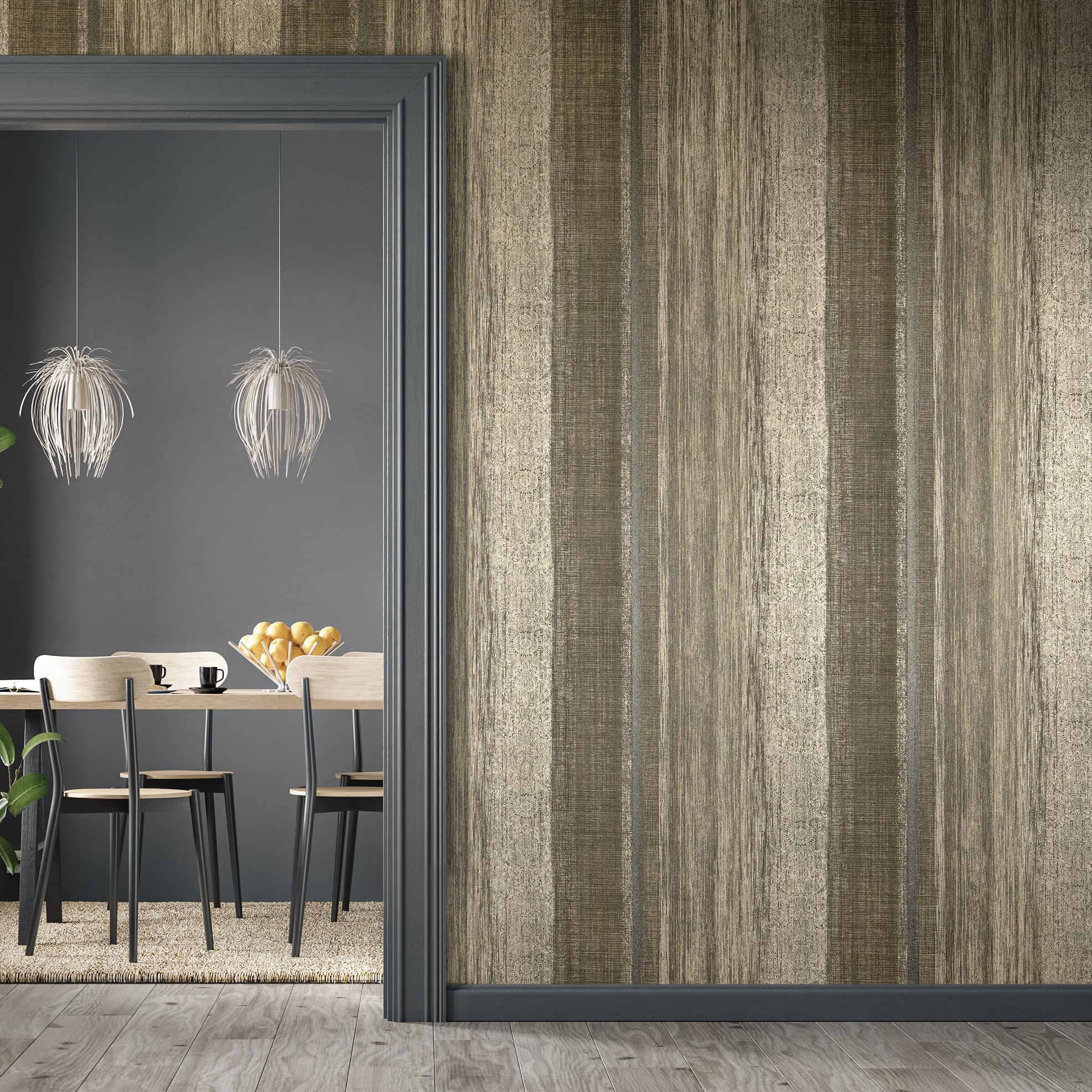 Traditionelle Seidenfasern verleihen Chiffon einen eleganten Schimmer. Dieser Effekt wird durch silber- oder goldschimmernde Streifen auf der wohngesunden Vliestapete nachempfunden.... Lesen Sie mehr